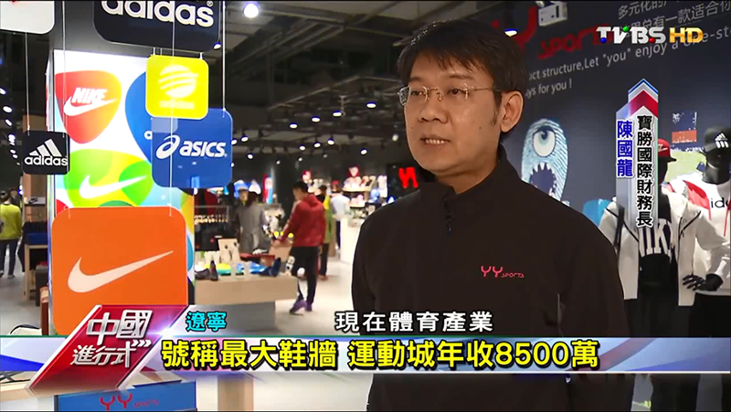在今年4月中,臺(tái)灣TVBS電視臺(tái)記者在遼寧省臺(tái)辦新聞處長(zhǎng)的陪同下,分別走訪并采訪了沈陽(yáng)五里河公園、健身廣場(chǎng)、YYsports多品店及YYsports勝道運(yùn)動(dòng)城等,深受廣大健身愛(ài)好者喜愛(ài)的鍛煉和消費(fèi)場(chǎng)所,感受了沈陽(yáng) “全民健身,共享健康”的熱烈氣氛,并在YYsports店鋪現(xiàn)場(chǎng)對(duì)陳國(guó)龍執(zhí)行副總進(jìn)行了采訪訪談。在訪談中,陳國(guó)龍執(zhí)行副總分析了大陸體育用品市場(chǎng)的變化趨勢(shì),介紹了目前寶勝?lài)?guó)際經(jīng)營(yíng)代理品牌的發(fā)展、業(yè)務(wù)成長(zhǎng)情況,以及未來(lái)公司行銷(xiāo)工作的規(guī)劃。同時(shí)遼寧沈陽(yáng)區(qū)部總經(jīng)理及店鋪主管,也對(duì)店鋪基本情況和店鋪經(jīng)營(yíng)、管理等做了介紹,并回答了記者的提問(wèn)。店鋪員工也進(jìn)行了客服、收銀等業(yè)務(wù)展示。